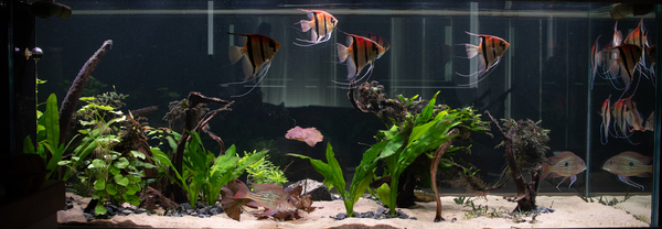 De maanvissen hebben alles midden/boven en de geophagus hebben de bodem.