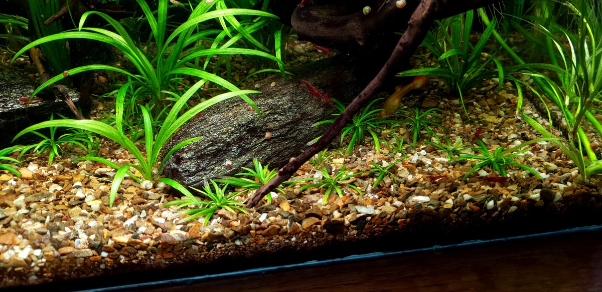 Ik heb de plant nu midden in de bak gezet zodat tie voldoende licht vangt tijdens de overgang. Ik wil hem als tie goed aangeslagen en gegroeid is verplaatsen naar de hoeken. Die zijn relatief donker, dus daar wilde ik niet beginnen.Een beetje begeleiding als je ziet dat het aanslaat is een optie. Wat je ook kan doen is een stekje in een hoek zetten (drijfplant idee) met de groeipunt naar het glas toe gericht. Stekje moet wel nergens heen kunnen drijven en dus wat weerstand ondervinden zodat de groeipunt zich naar boven kan drukken. Verder is licht ook zeer belangrijk uiteraard. Mijn bakje staat dicht bij een raam, je ziet echt de seizoens invloeden terug in bladontwikkeling en groeisnelheid.