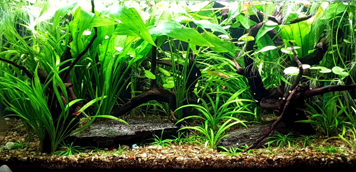 Ziet er mooi uit hoor !Maar weer ff wat foto's geschoten na onderhouds beurtje. Links achterin weer wat latifolia's geplant. Dit zijn allemaal stekjes. Ook nog een stek van de Hydrocotyle links achterin geplaatst. De moederplant heeft daar het loodje gelegd maar genoeg stekken geproduceerd. Zodra mijn opvangbak weer leeg komt gaan daar het guppenbroedsel in 😅. Enjoy de foto's: