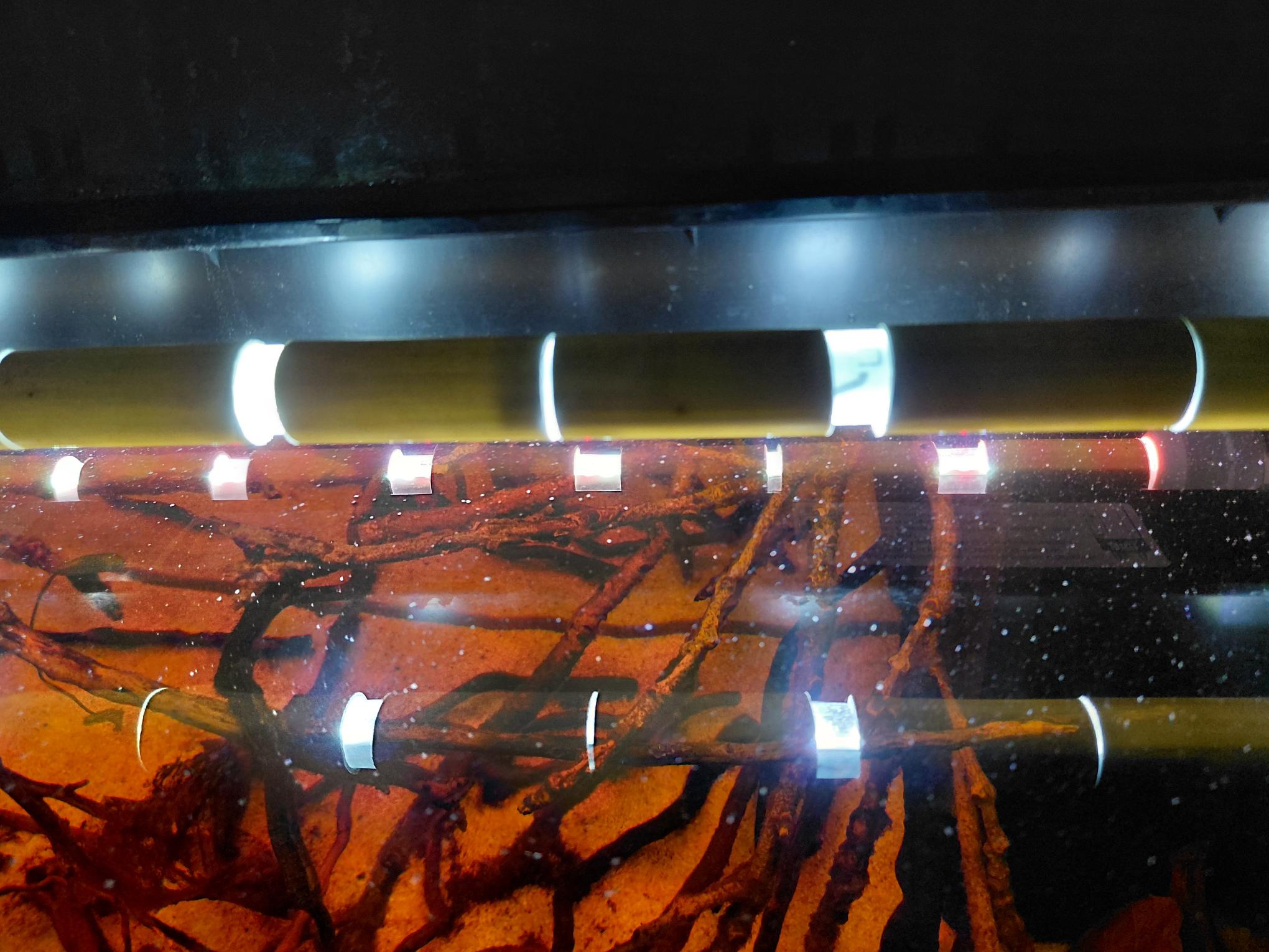 Passende buisjes van grijze PVC. Ik had dit al in mindere mate in m'n vorige setup. De buisjes van ongeveer 5cm en zo kan ik dus ook schuiven door bepaalde gebieden, bijvoorbeeld waar planten zijn wat meer licht te geven.