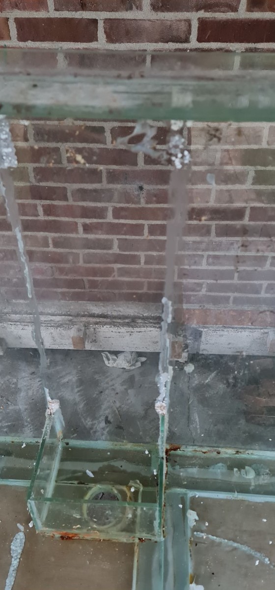 Het glas verkeerd in een prima staat. Maar bij de vorige eigenaar is een kitrand gesneuveld waardoor hij dus is gaan lekken.
