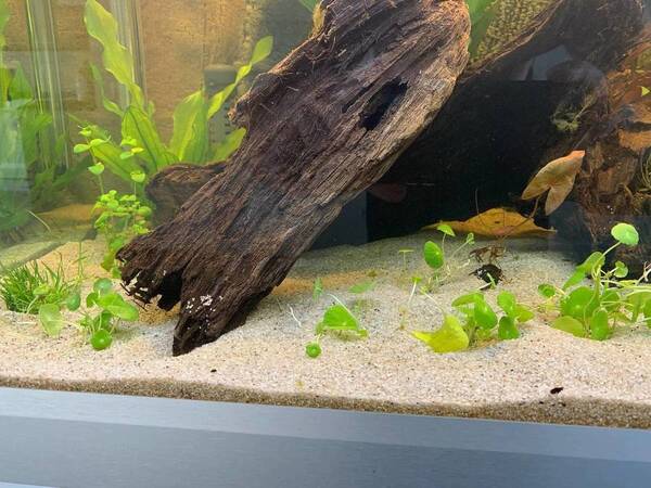 Ik kwam bij het planten tot de conclusie dat in ieder geval één plantje aan het verslijmen was (de Myriophyllum Guyana in het midden van de bak).