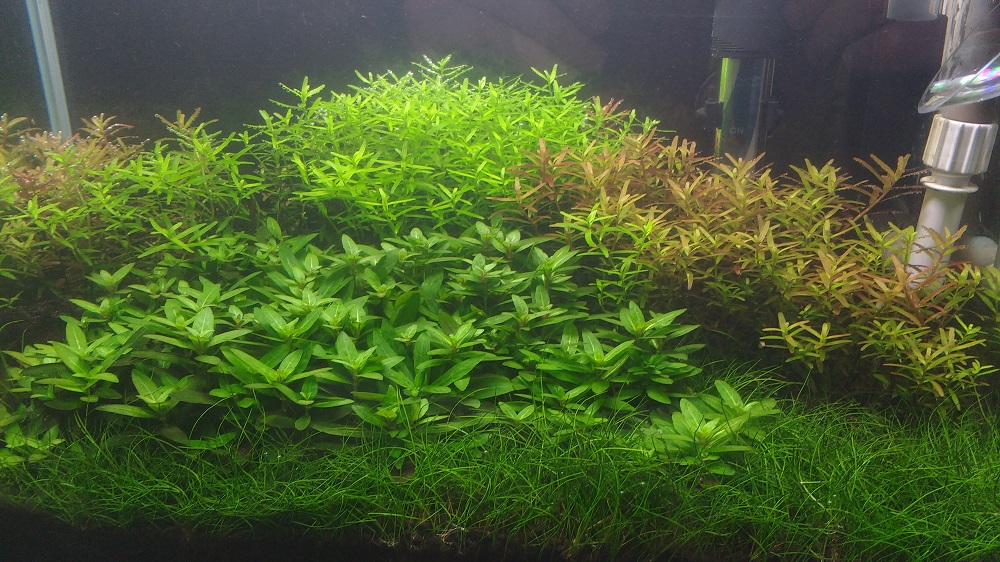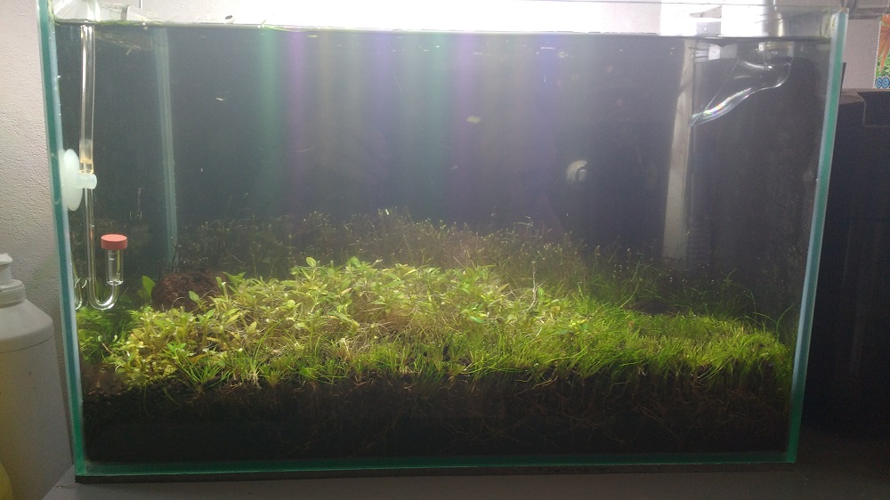 Ik laat het helemaal dichtgroeien met Hemianthus callitrichoides (ookwel 'baby tears'). Dat gaat denk zo'n week of 8 duren.