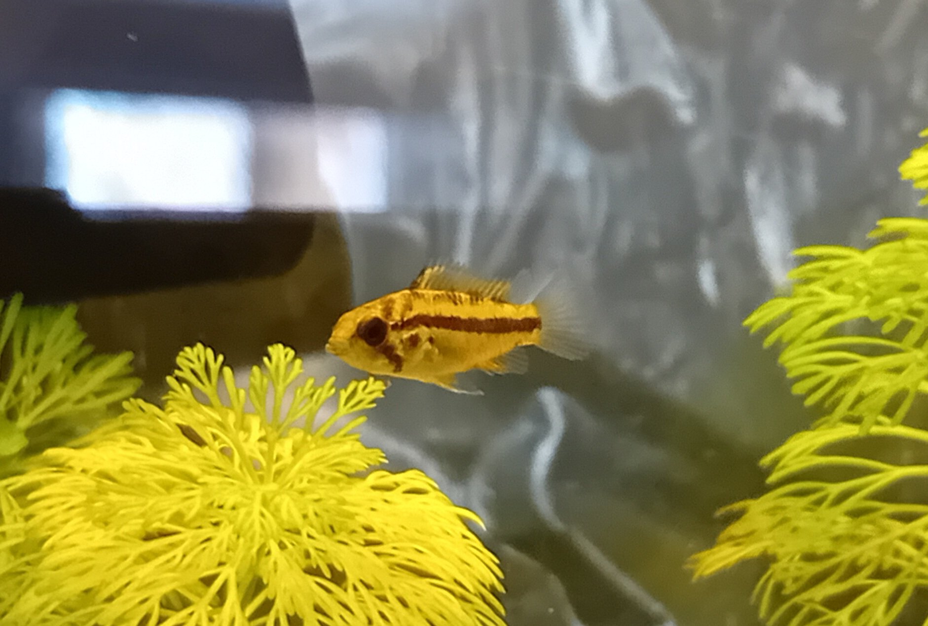 Ons koppel apistogramma cacatuoides heeft nu al een aantal keer jongen gehad in ons gezelschaps aquarium. Deze jongen gingen elke keer na ongeveer een week vrij rond zwemmen dood. Maar nu bij het laatste nestje heb ik gebruik gemaakt van voertabletten en lijkt het beter te gaan. Ze zijn nu ongeveer 2,5 week oud. Stuk groter dan we ze ooit gezien hebben en moeder beschermd ze goed voor de rest van de vissen behalve voor papa vis die er wel bij mag komen en zo wel af en toe een visje wegsnoept 🙁