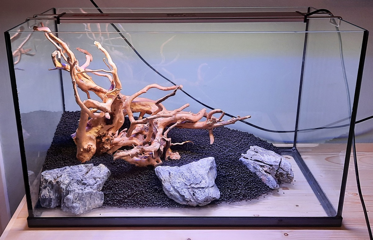 Misschien was het inderdaad niet zo'n goed idee, maar nu heb ik het gebruikt als opvulling. Eerste laag oude aquasoil, tweede laag sera voedingsbodem en derde laag nieuwe aquasoil. Hopelijk gaat alles groeien! We gaan het zien.
