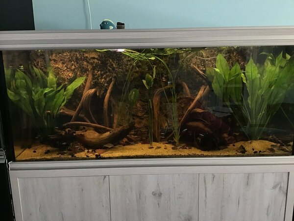 Hij is wel mooi, maar toch vindt ik de Bleheri niet zo mooi, moet ze weer behoorlijk terugsnoeien omdat er bladeren bij zitten met gaten langs de randen, ik verdenk de Sturisoma’s ervan om dit te doen. Ze zetten wel steeds nieuwe bladeren.