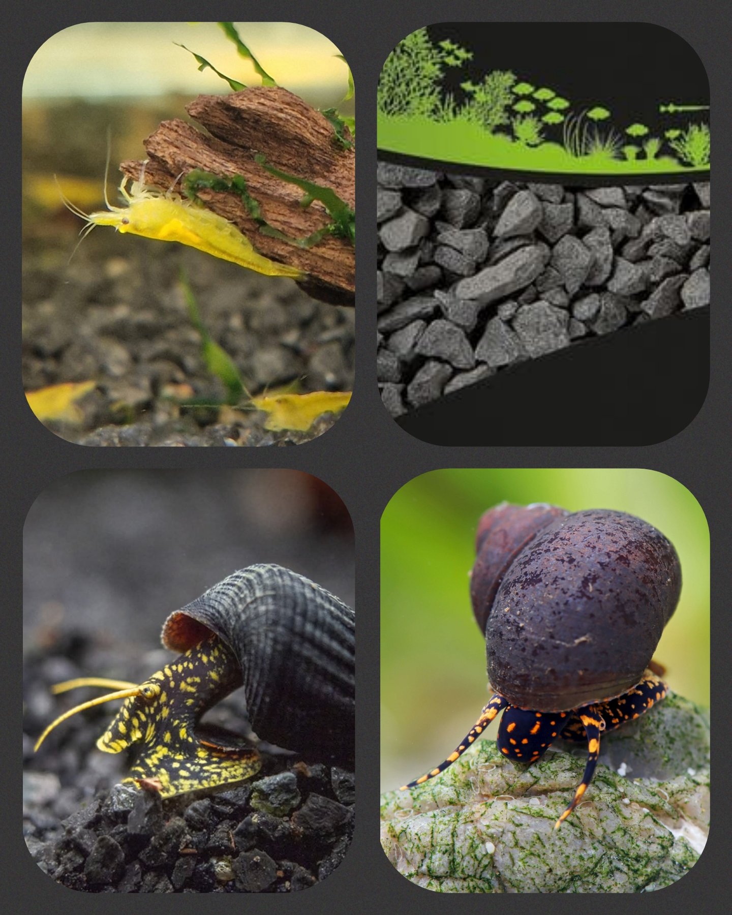 Mijn eerste indruk van de 5 Tylomelania Yellow Spot en 10 citroengarnalen is positief. Ze zijn erg leuk om naar de kijken!