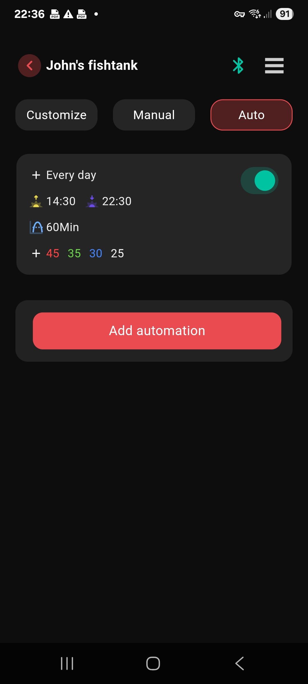 Dat blijft zelf uitproberen John. Belangrijk hierbij is hoe je bak oogt onder je ingestelde programma en natuurlijk hoe je planten reageren. Dat laatste duurt min 1 week (bij snelgroeiers) voordat je daar mogelijk iets over kan zeggen. Na een gekozen instelling dus lekker 1 a 2 wkn laten draaien en daarna mogelijk weer iets aanpassen.