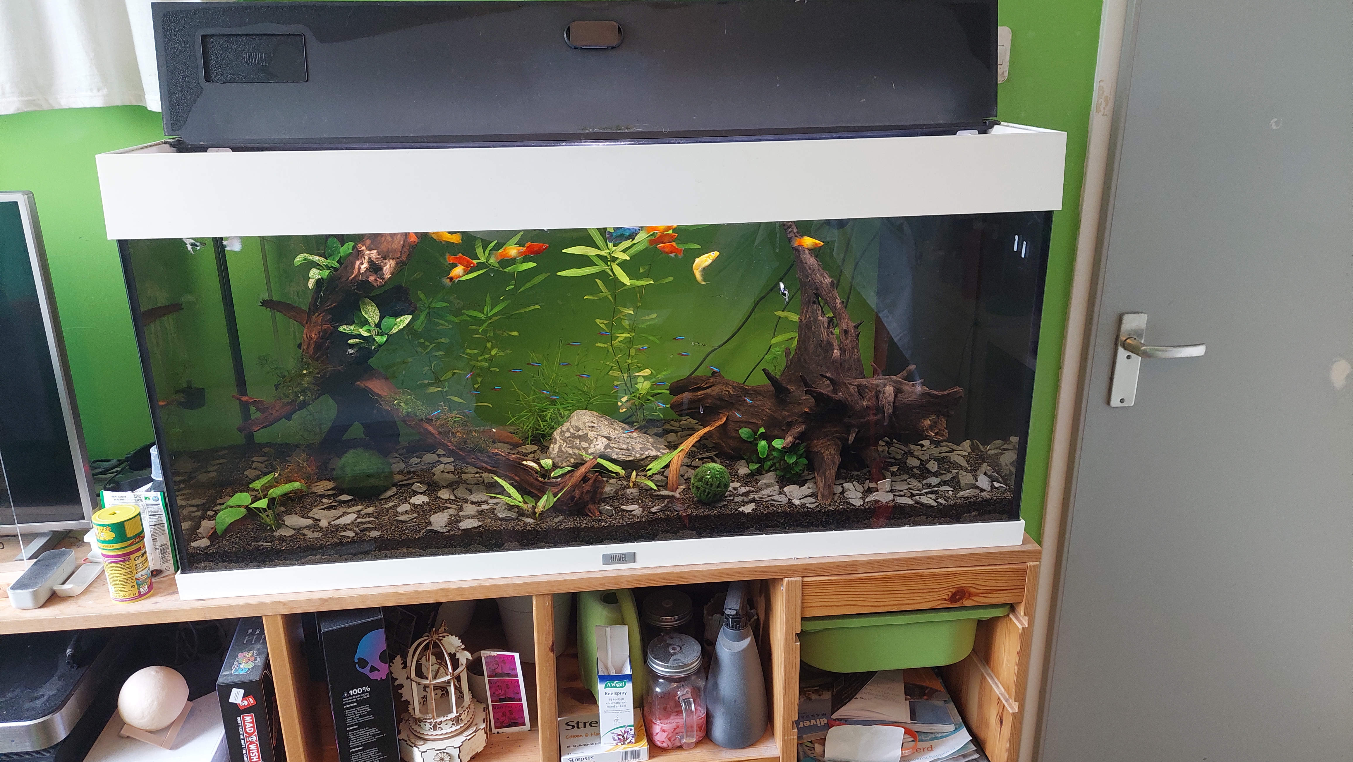 dat gaat alweer teruglijken op een sfeervolle tlbuis combinatie en vind ik dat mooi teruguitgevonden , zo,n paneeltje is is multi inzetbaar en met een draaiknopje te dimmen van bv een tl tot wel 10 een dat vind ik leuk speelgoed voorlopig.je moet nadenken over het plantenbestand in je aquarium. Wil je planten gaan houden die veel licht nodig hebben, dan moet je daar de juiste verlichting bij kiezen. Veel licht betekend ook dat je met voldoende meststoffen en CO2 aan de slag moet gaan.Meer plantengroei en beter uitkomen van de kleuren van mijn vissen, nu staat 1 lichtbar schuin de bak in zodat meer verdeeld word.