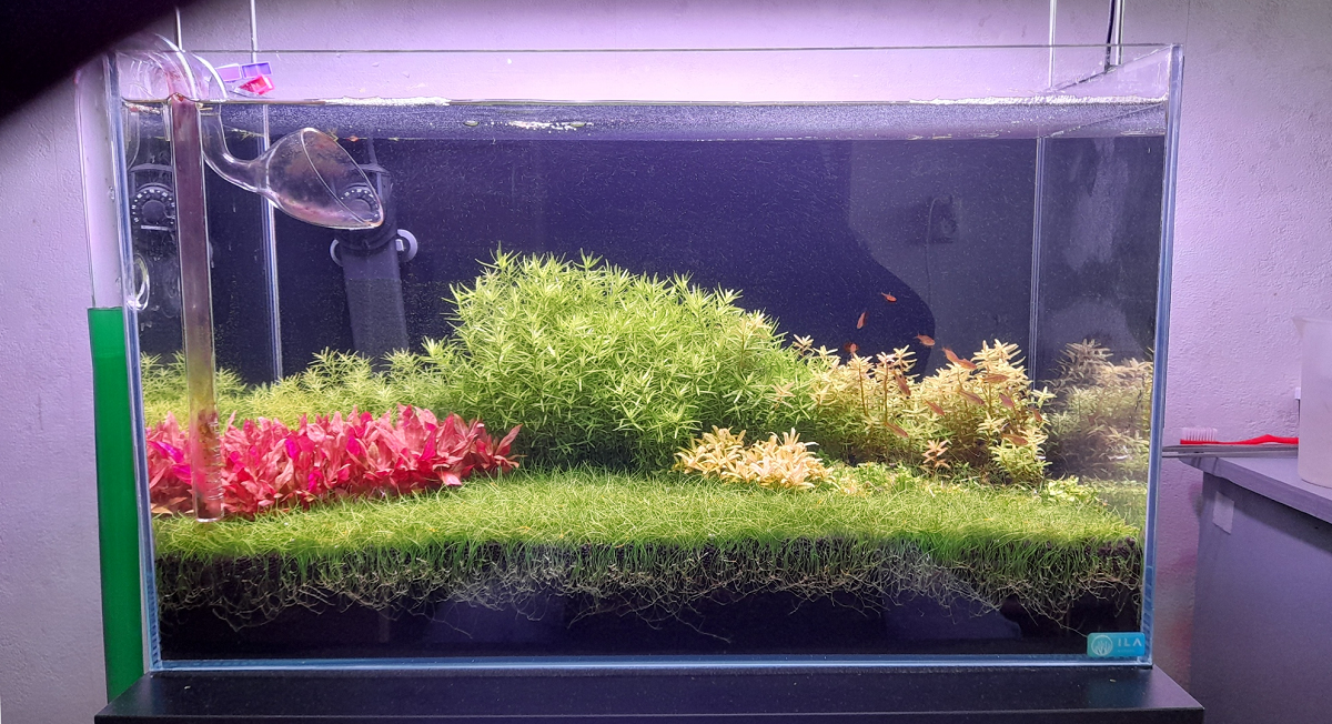 De Rotala indica heb ik tot een cm hoog afgeknipt om een compacte bos te creëren. De Nessea blijft wat achter in de groei. Geen idee hoe het komt, heb nog niet zoveel ervaring met dit plantje.