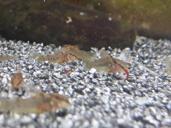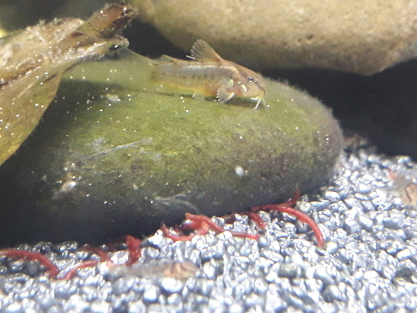 De jonge corydoras worden al hebberig, ze gaan nu ook voor het grotere diepvries voer tubifex.