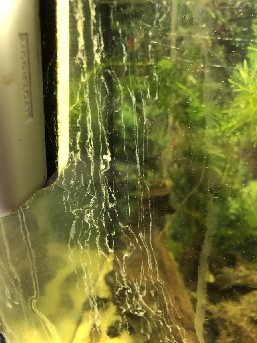 Net gezien dat ze weer aan het paren zijn, alleen zitten de eitjes op zeer moeilijk bereikbare plekken en het zijn er niet zo veel. Daarom heb ik besloten om ze te laten zitten, de vissen zitten nog geen week ik dit aquarium dus om nu alles er weer uit te halen enzo maakt ze alleen maar nog meer gestrest. Misschien dat als ze ze straks nog op de voorruit plakken dat ik die er dan wel uit haal