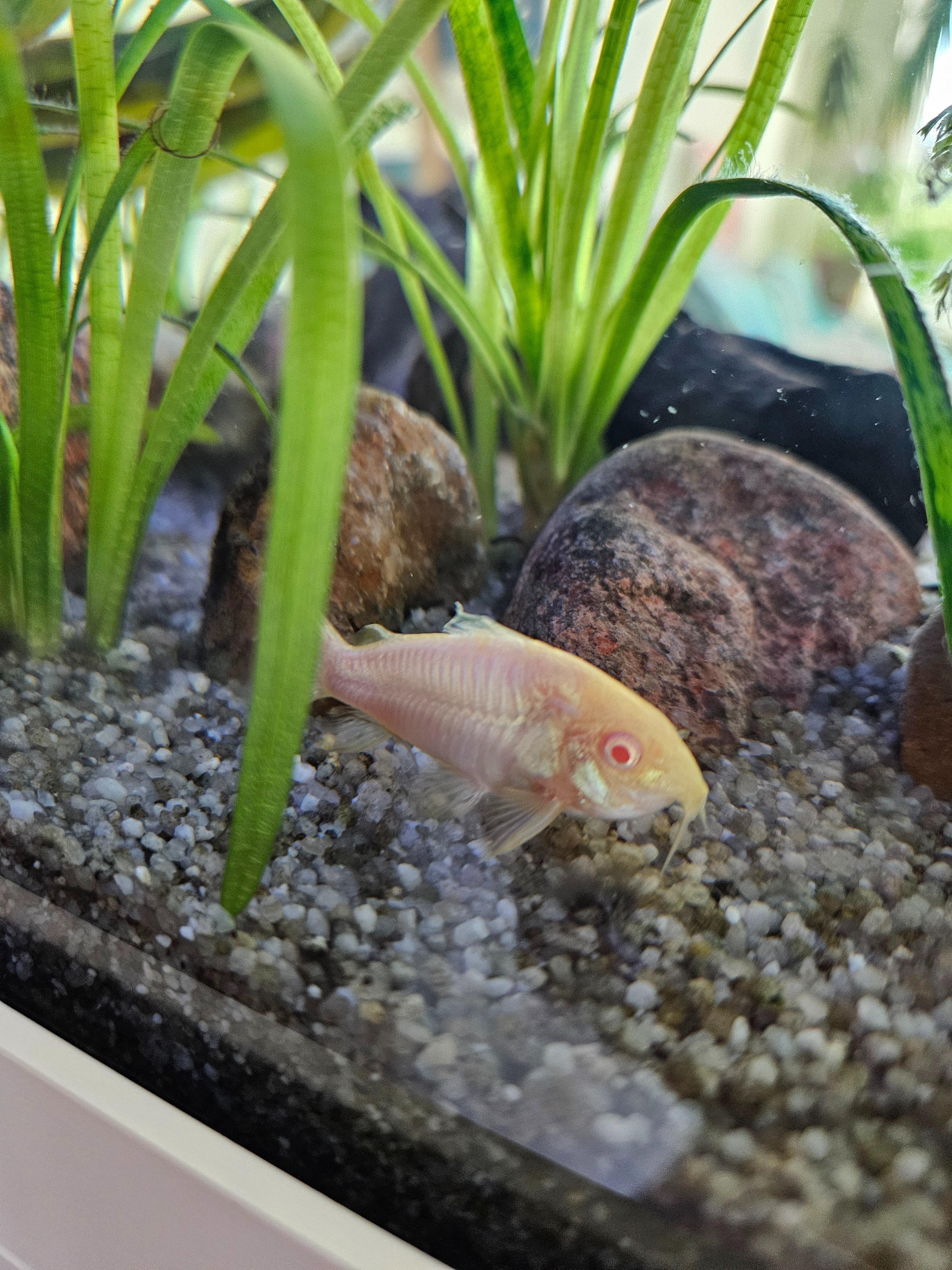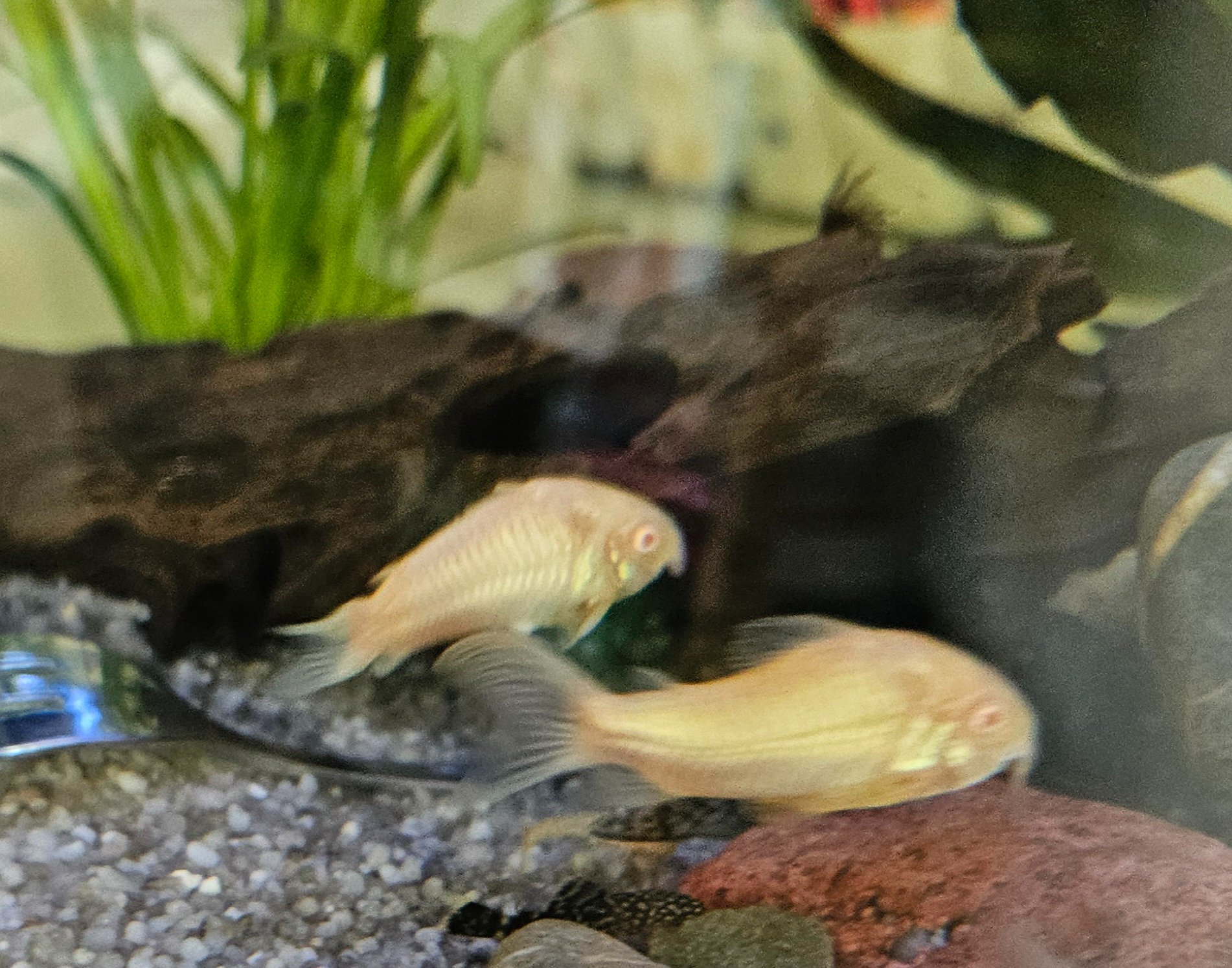 Ik heb een aantal corydoras aeneus albino en af en toe wordt er 1 ziek, zie foto's (steeds de linkervis op de foto als er 2 op staan). Is ook al een paar keer eerder gebeurd in de afgelopen jaren (niet vaak), maar ik zou nu wel graag ingrijpen.