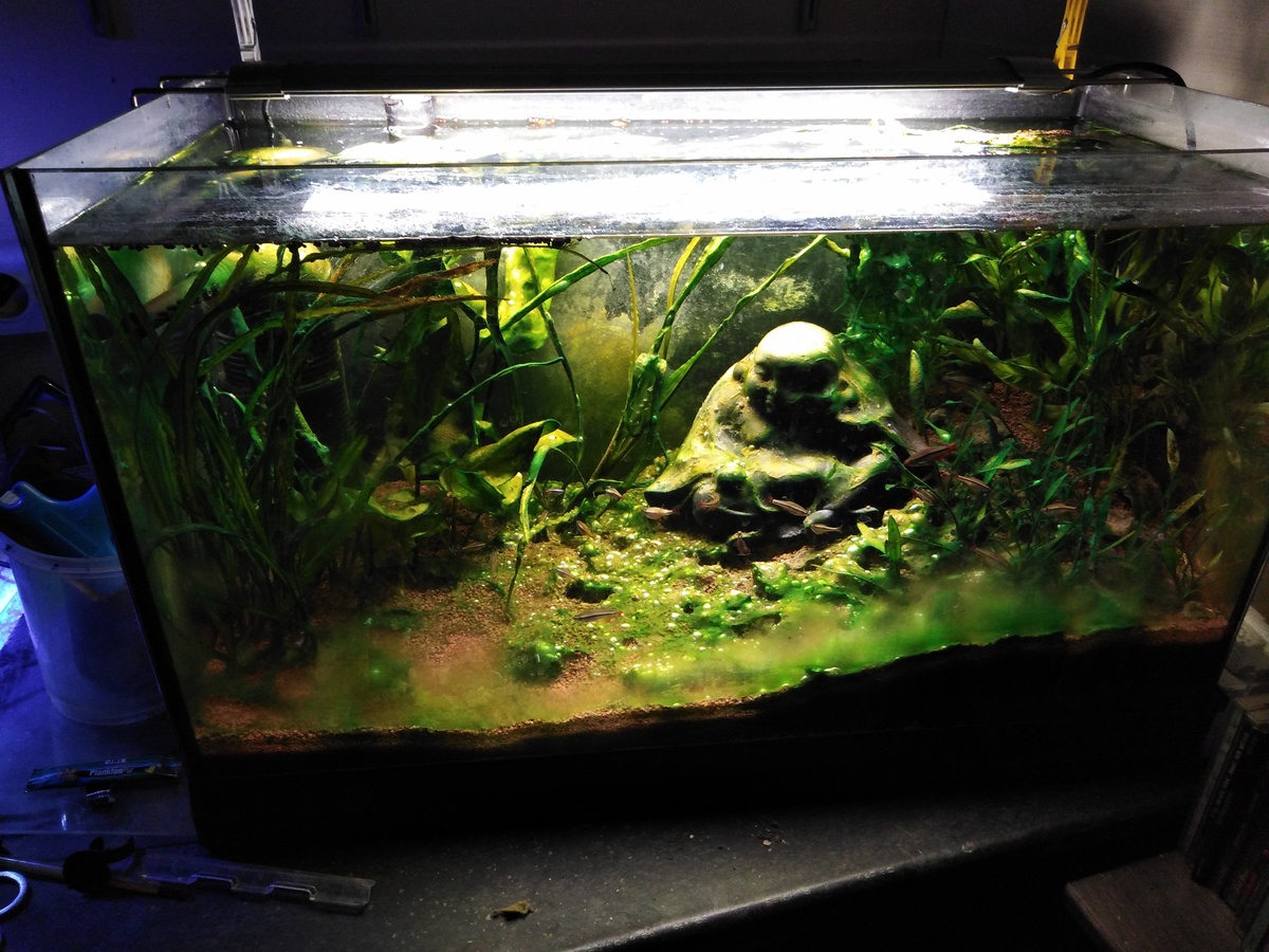 De eerste die ik opstartte was een 60cm. Ik ben al langer verliefd op Rhinoghobius dus besloot ik eens een hillstream te proberen. En dit was mijn eerste stap om het in te richten.