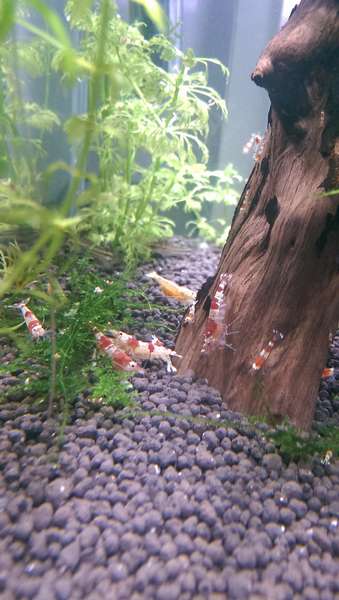 Prachtige dieren! Is er een reden waarom je niet zoveel mos/planten in het aquarium hebt? Desondanks lijkt het de garnalen niet veel uit te maken. Ze kweken toch wel 😀