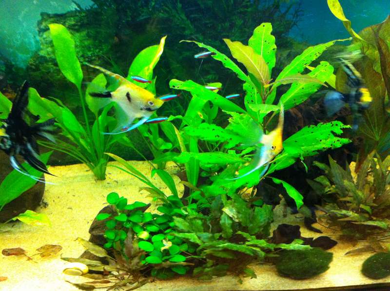 Wat betreft het houden van de maanvissen in een 240 liter bak, heeft iedereen een andere mening natuurlijk. Naar mijn mening is 240 liter minimaal, maar goed mogelijk. Als je er maar verder weinig andere vissen bij houdt, in mijn geval dus alleen een paar kardinaaltetra's en de algeneters. Gaat perfect zo.