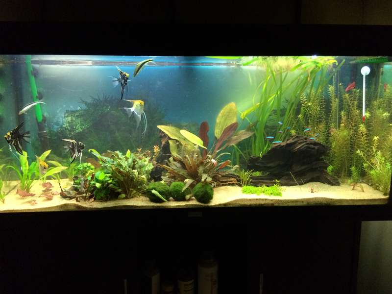 Ik wilde een kleine verandering aanbrengen in mijn visbestand. De guppen en betta's gaan er uit en ik wilde er 3-4 maanvissen in doen. Maanvissen vind ik erg mooi en heb ik eerder ook gehad. Ik heb op meerdere plekken gelezen dat ze prima in een 240 liter gehouden kunnen worden.