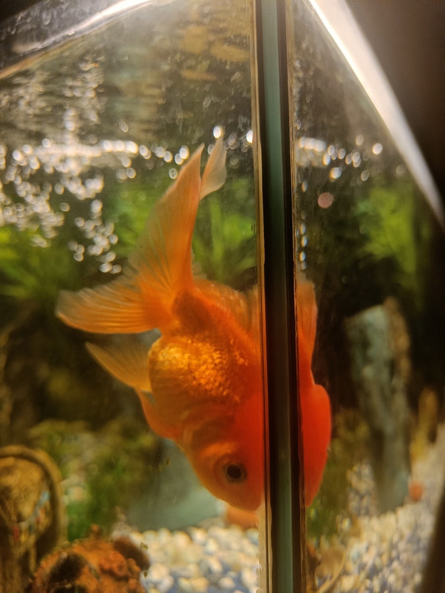 Sinds twee dagen merk ik vreemd gedrag bij mijn leeuwenkop. Ik heb toen 1/3 van het water extra ververst. Nu zie ik witte vlekken op de vinnen. Ik kan niet goed onderscheiden of vinrot is of stip (ik hen geprobeerd om goede fotos te maken). Om de vis goed te behandelen wil ik graag zeker zijn. Ik sta op het punt om nogmaals 1/3 te verversen. Iemand tips of mij kan helpen bij een diagnose zodat ik de vis goed kan behandelen.