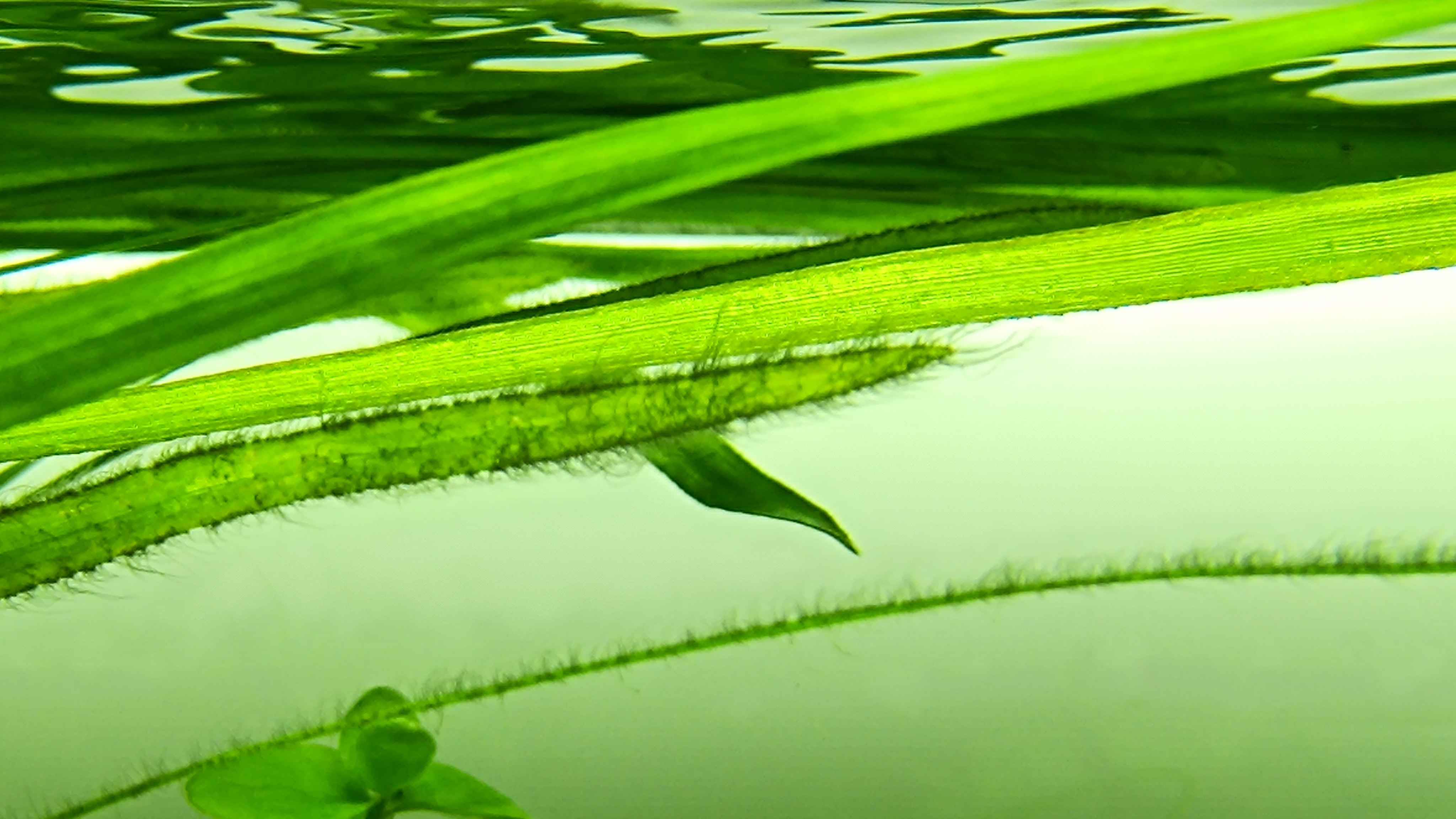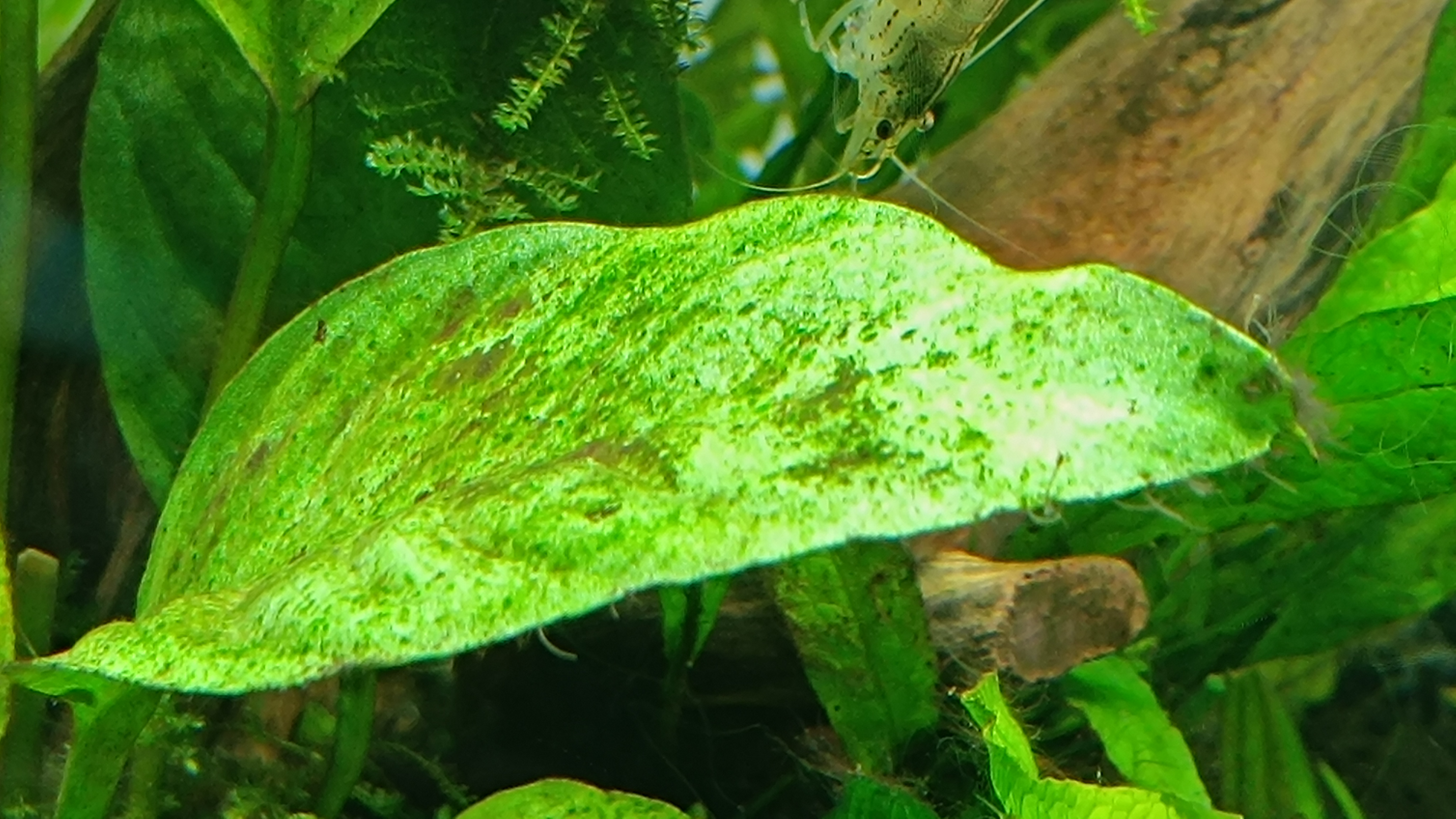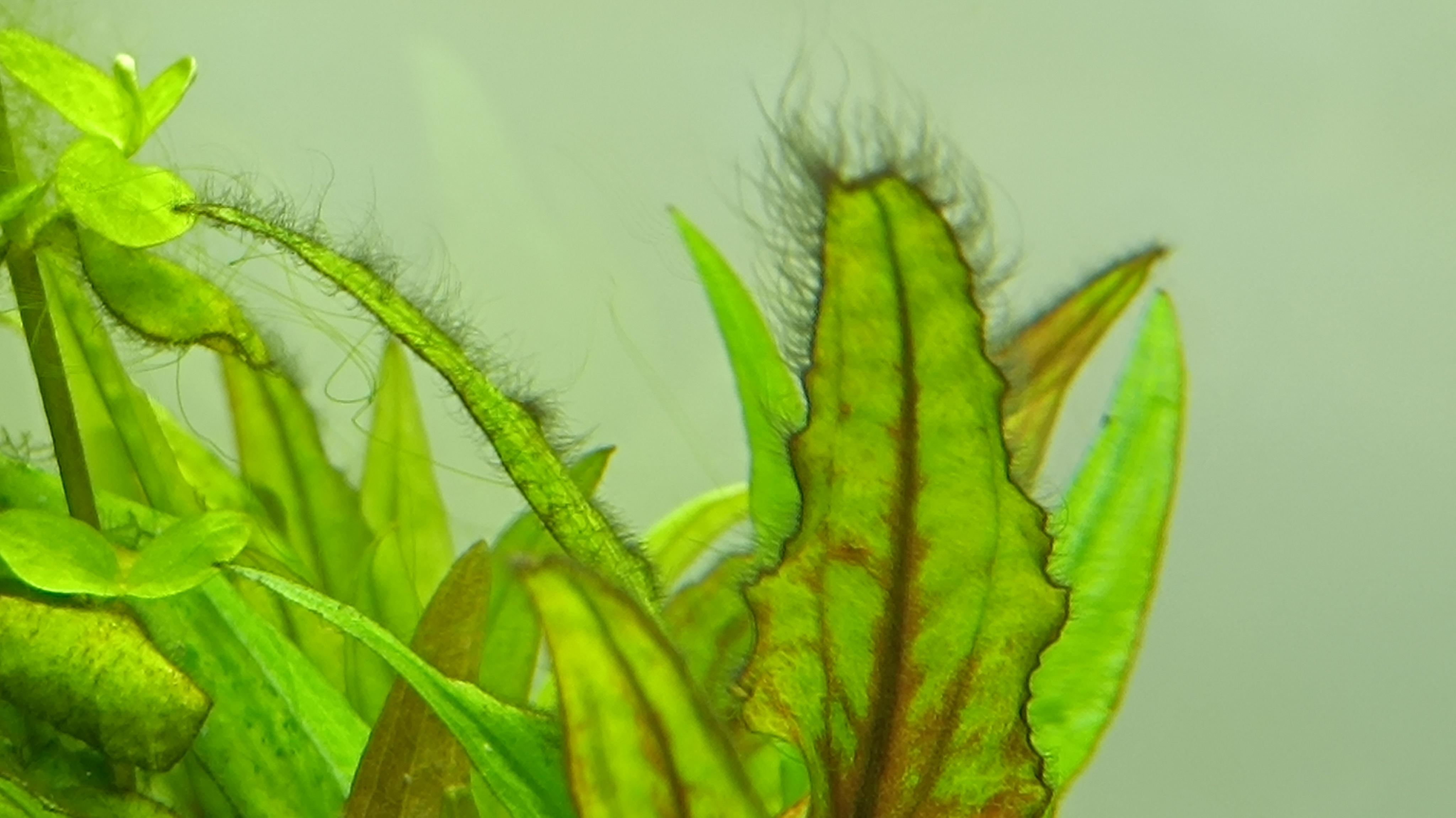 Onlangs startte ik een nieuw aquarium op. Zoals ergens wel verwacht passeert een hele reeks algen de revue: het begon met bruinalgen (inmiddels verdwenen), dan groene algen (voornamelijk draadalgen - nog aanwezig) maar sinds een paar dagen zie ik ook kleine zwarte haartjes op randen van planten. Dit laatste baart me het meeste zorgen. Ik ben niet helemaal zeker of het baardalgen zijn (in een vorig aquarium waren die veel 'pluiziger') en ben benieuwd naar jullie mening!