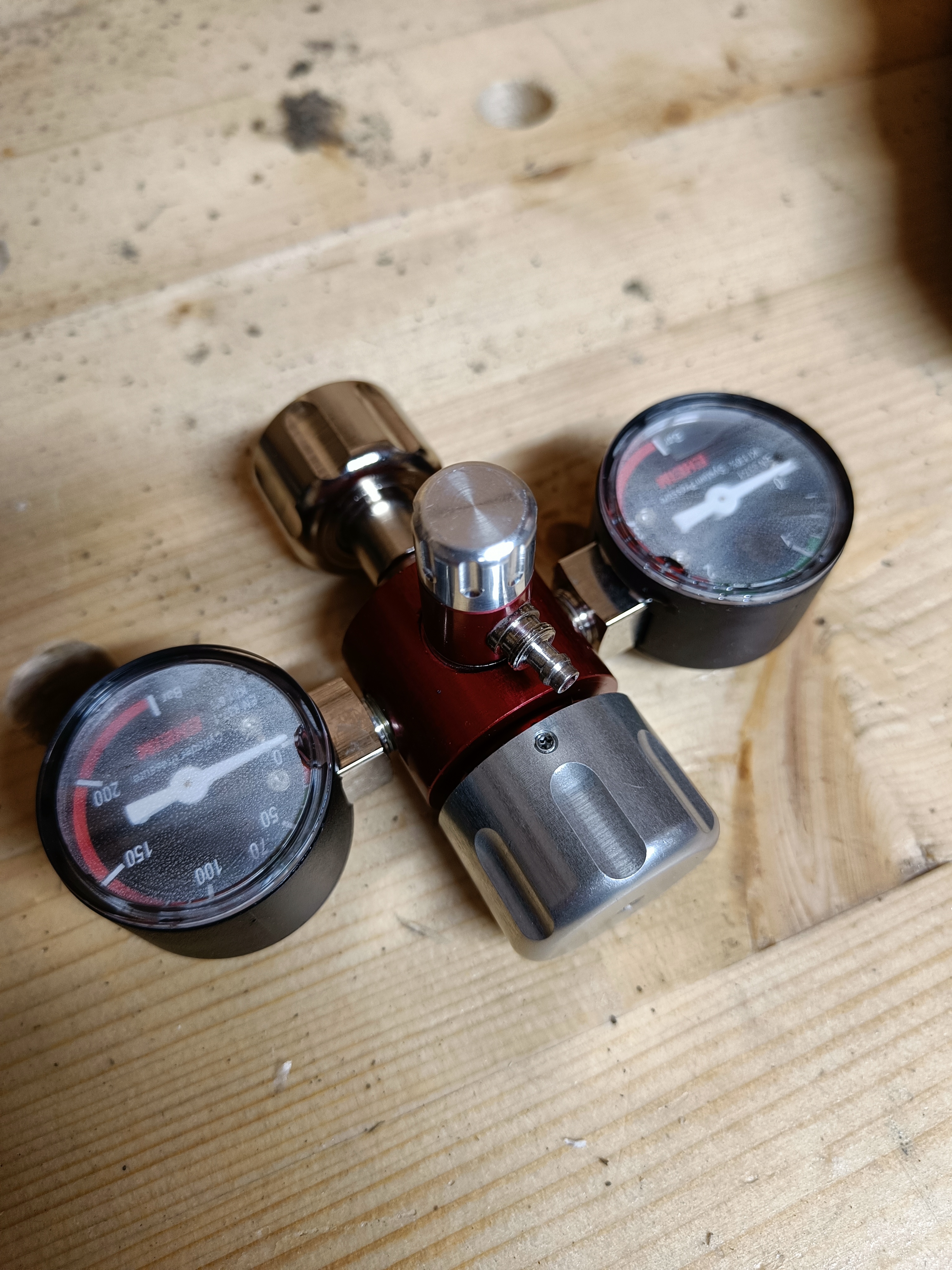Ik heb gisteren een tweedehands CO2 systeem van Eheim aangeschaft. Zojuist bezig met het aansluiten van de drukregelaar. Het viel mij op dat wanneer het magneetventiel dicht staat, er een zacht sissend geluid vanaf de drukregelaar komt. Na een testje met water ben ik erachter gekomen dat dit onder de zilveren draaiknop vandaan komt.