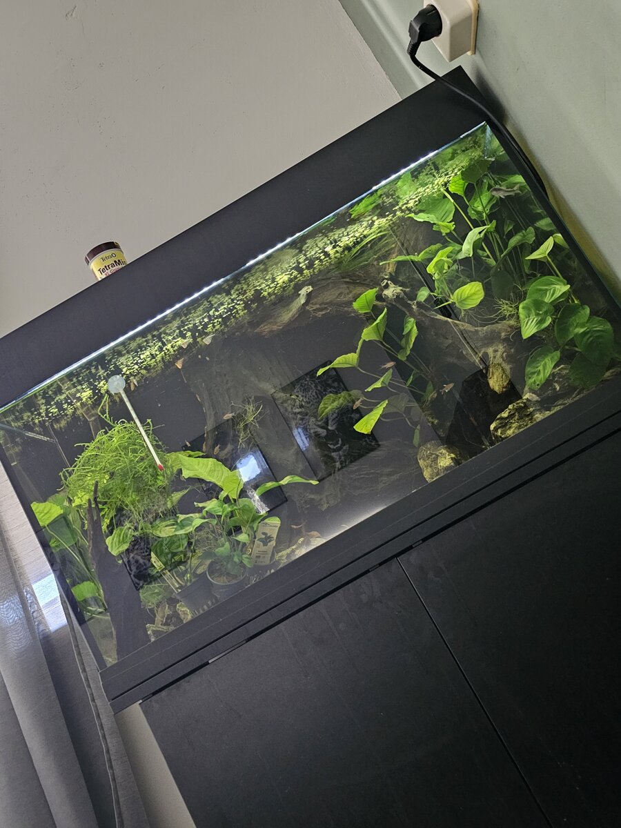 Vissen doen het goed, garnalen doen het goed dus bijna helemaal blij mee. Pygmaeus was echt de beste keuze; te vinden door de hele bak. Vrijzwemmend tot grondelend over de bodem