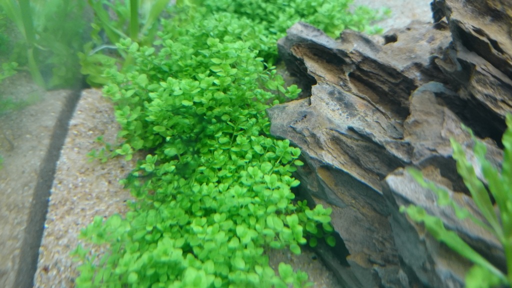 Tip om relief te krijgen in je bodembegroeiing: ik heb in mijn aquarium de HC gewoon op wat keien liggen; die zijn inmiddels helemaal begroeid.