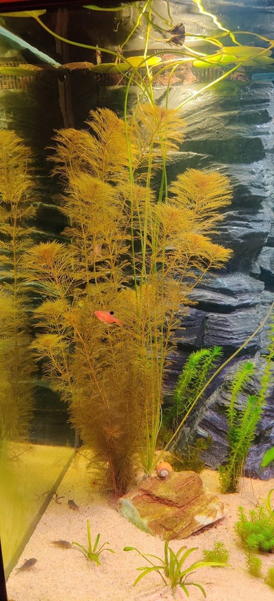 Serieus he, dan heb je anderhalve kuub water maar liefst 250 cm glas en dan zitten je hoofdbewoners gezellig op een kluitje van 10 cm.