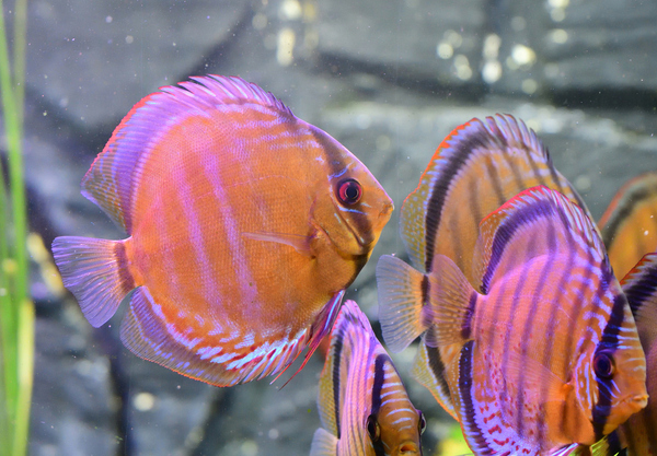 In stress worden ze donker. Verder is het een deel van hun communicatie middel, wat ze echter precies zeggen is mij in ieder geval nog niet duidelijk geworden tot nu toe. Een discus die lekker in zijn vel zit en niet aan het "praten" is, laat niet tot nauwelijks strepen zien in principe
