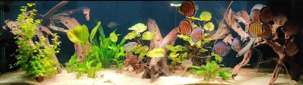 dit aquarium heeft superspecifieke omstandigheden, het vraagt eigenlijk om een keiharde snelgroeier die het niet erg vindt om in zeer warm zuur water te staan.
