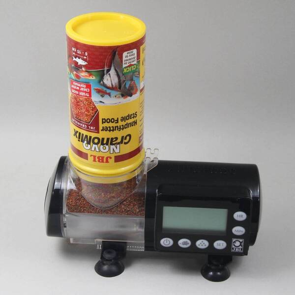 Ja, ik weet dat je slechts 1 soort voer kan aanbieden, het gaat er puur om dat ik hem gebruik als we een paar dagen weg zijn, of overdag allebei werken, dat ik de vissen op vaste tijden kan voeren, en savonds levend of diepvriesvoer kan aanbieden.