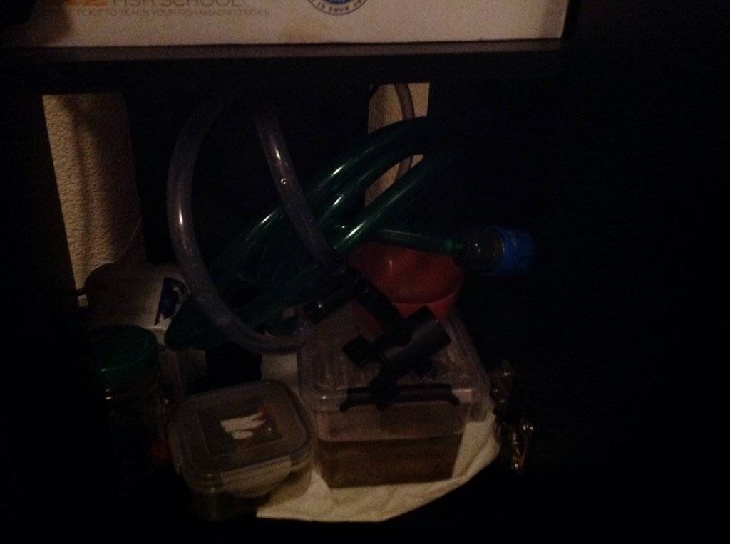 Nu begint het water te lopen van het aquarium naar de afvoer.