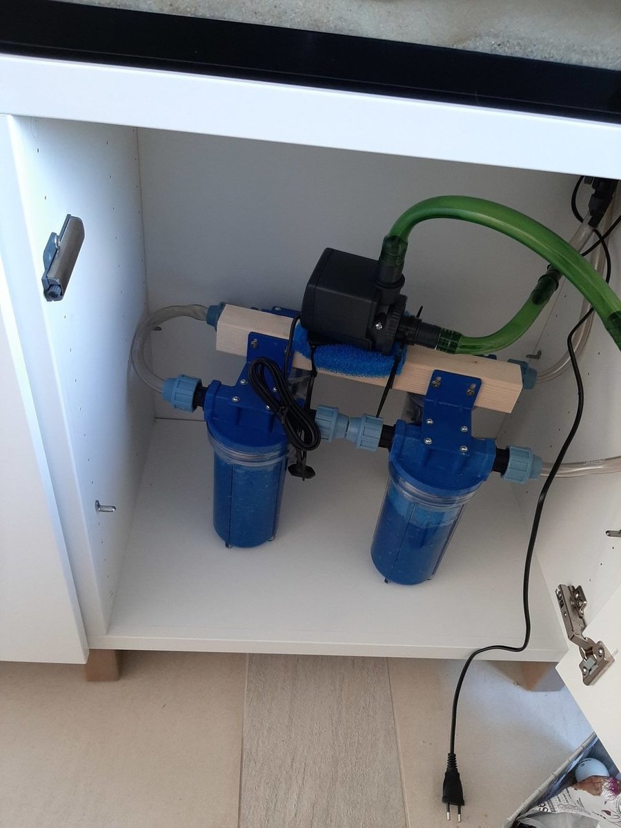 Wat een geweldig leuke uitvoering en goed onderbouwd idee! Ik zag gisteren die filterpotten nog bij Cranenbroek.Omdat er van 100 liter naar ruim 1000 liter zijn gegaan.