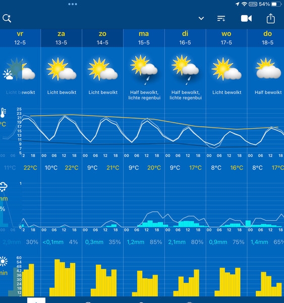 Dan kijk je op de verkeerde weerapp. 😀Middag Albert en veel plezier. Het kan nu nog met het mooie weer. Na het weekend wordt het weer minder.