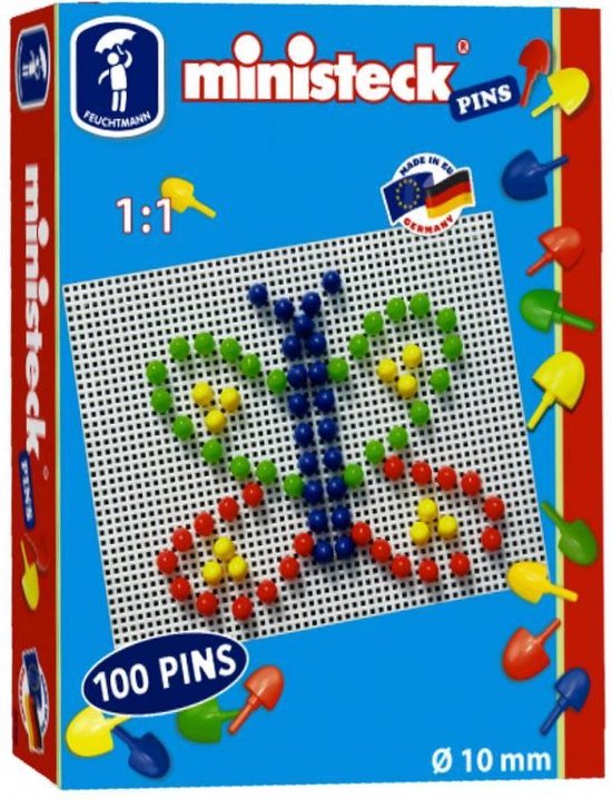 Ministeck is een soort Tetris. Blokjes stapelen. Maar dan op een raster. Puzzelen met kleine stukkies. Voor de onhandigen met grote vingers was er een versie met rondje pinnetjes die groter waren. Zie afbeeldingen. Wat denk je, zou ‘de jeugd’ het snappen??? 🙂
