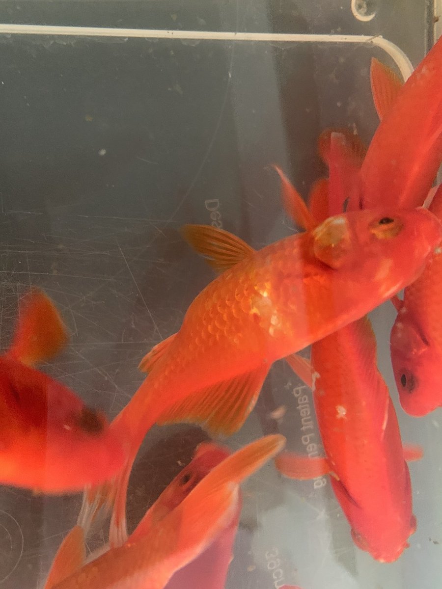 Ik zie niks vreemds behalve dat 1 vis echt een flink gat op z'n flank heeft. Wat dat precies is kan ik niet goed zien, wellicht een recente verwonding
