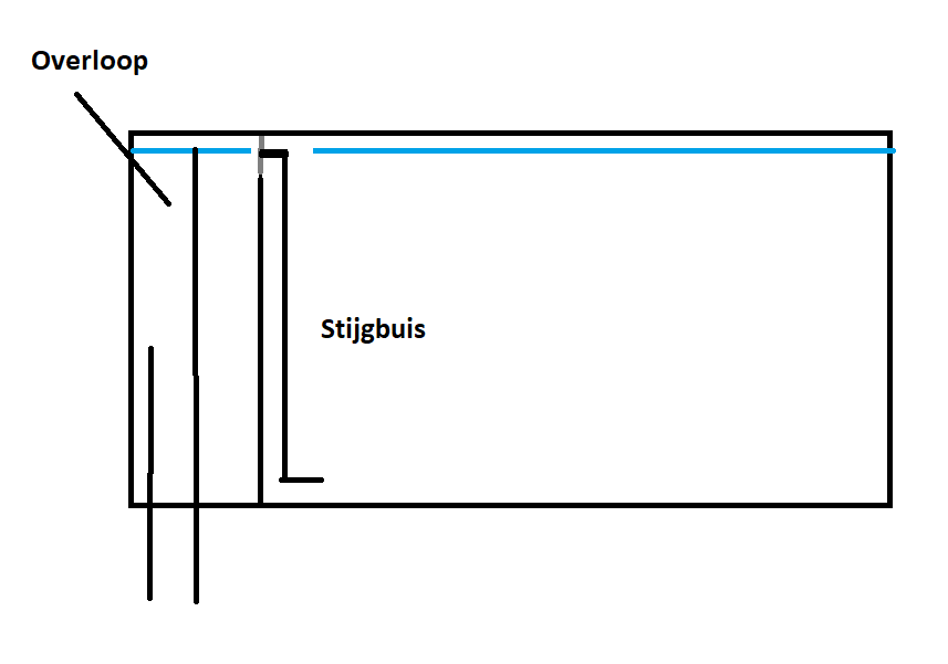 De bak krijgt dus een bioloog gevoed via een overloop. Ik heb begrepen dat een Herbie overloop het beste werkt. De overloop komt in het centrum van de bak. Ik heb geen ervaring hiermee en sta open voor advies. Welke overloop kam werkt het beste, moet de overloop schuine wanden hebben? Wat moet de diameter van de buizen zijn? Qua opvoerpomp denk ik aan een Jecod DCP 8000 of 10000. Er komen dus totaal 4 gaten in de bak: 2 voor de overloop, 1 voor de retour en 1 voor de droogkamer. Ik denk aan 50 mm doorsnede, maar hangt af van de diameter van de buizen.