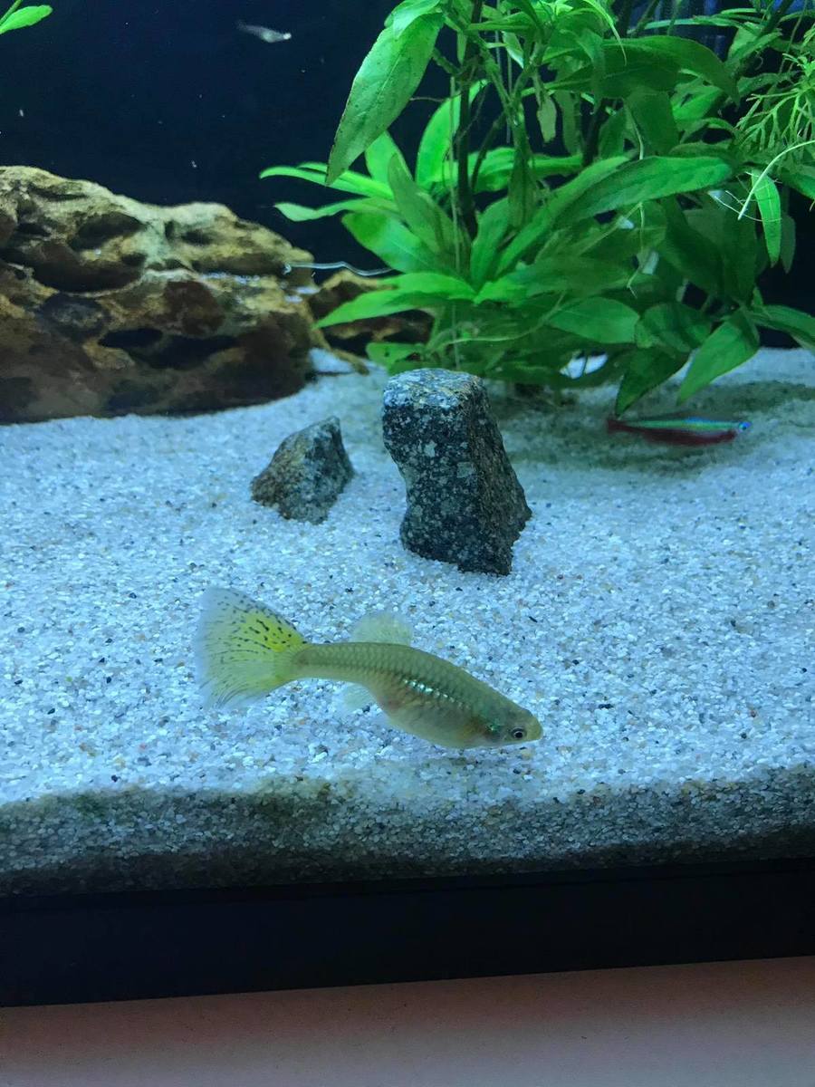 Ik heb nu een guppy van zo een 2 jaar oud.