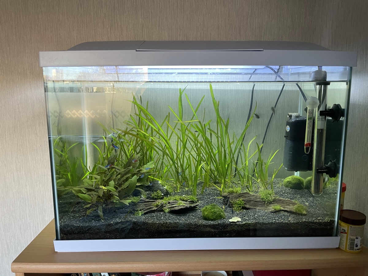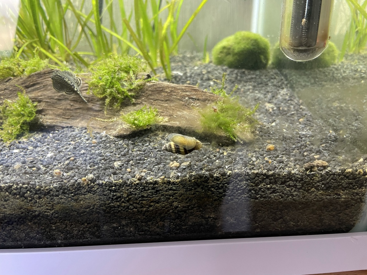 Ik heb een maand geleden een 2e hands 65 liter aquarium gekocht, hierin zaten al een paar planten. Nadat ik het aquarium had gevuld en een paar keer had schoongemaakt kwamen er kleine slakjes tevoorschijn. Met de tijd kwamen er steeds meer slakken en heb ik 5 helena slakken aangeschaft. Echter vraag ik mij af of ook deze mini slakjes worden opgegeten door de slak. Zie hieronder een foto van de slakken in mijn aquarium. Ook vroeg ik mij af of jullie de 2 plantensoorten in mijn aquarium zouden kunnen identificeren. Alvast bedankt!