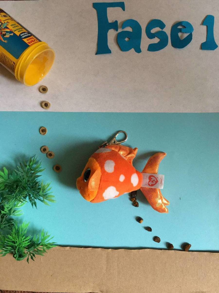 Fase 1 vis voeren Fase twee vis gaat bovenin kijken, fase 3 vis zwemt baantje, fase 4 vis is weg/dood of het plantje heeft hem op gegeten?