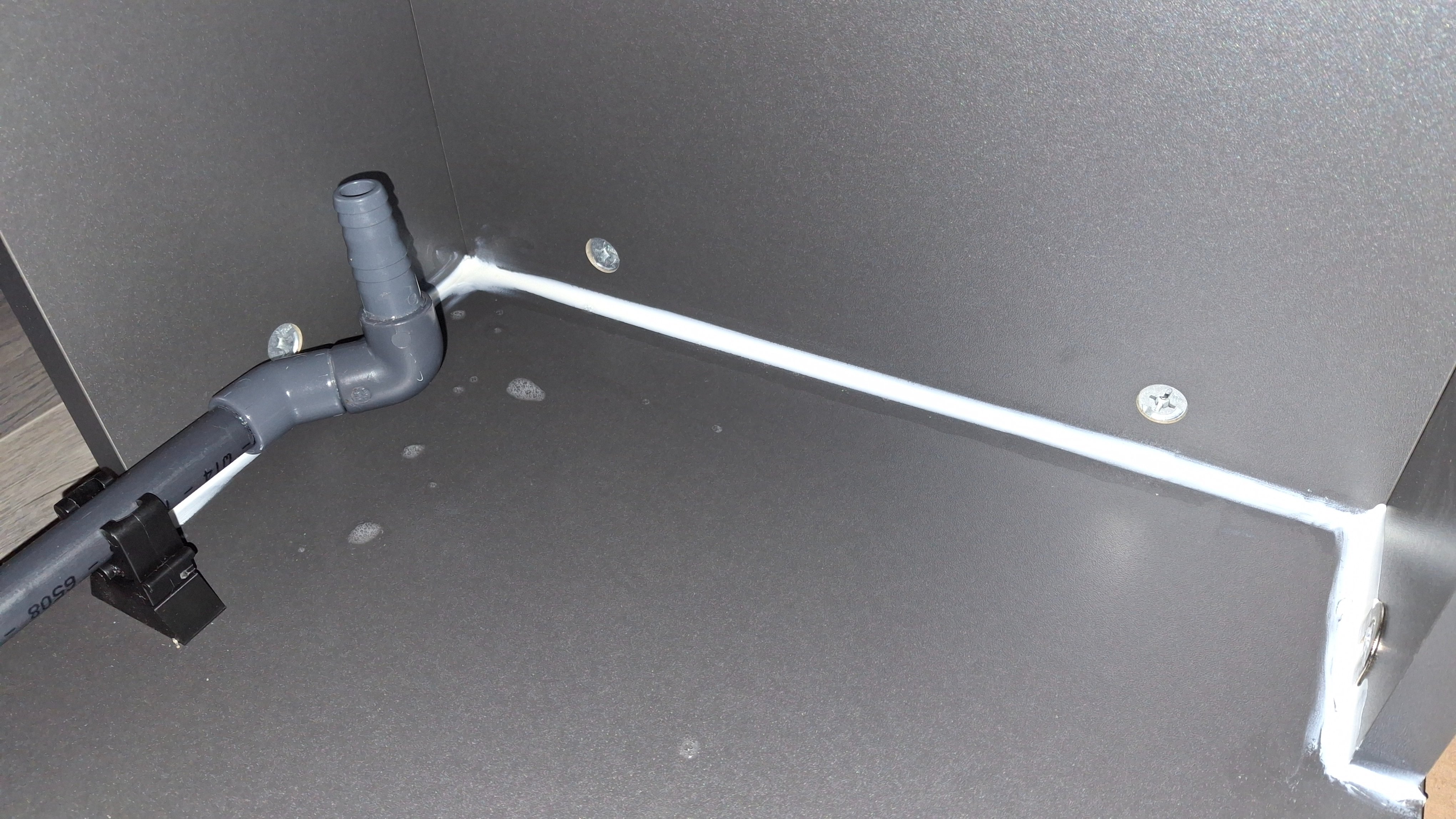 Had een stukje pvc tekort dus dat uit de pvc leiding van de Rio gehaald.