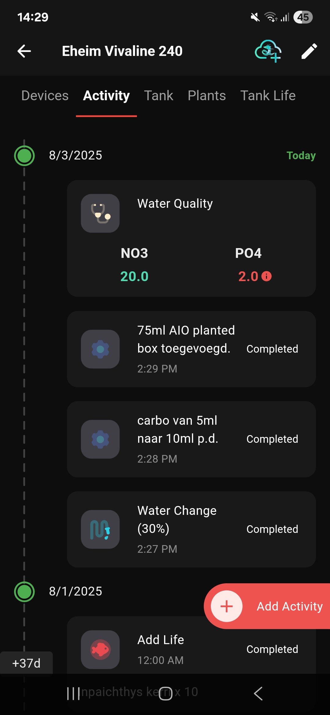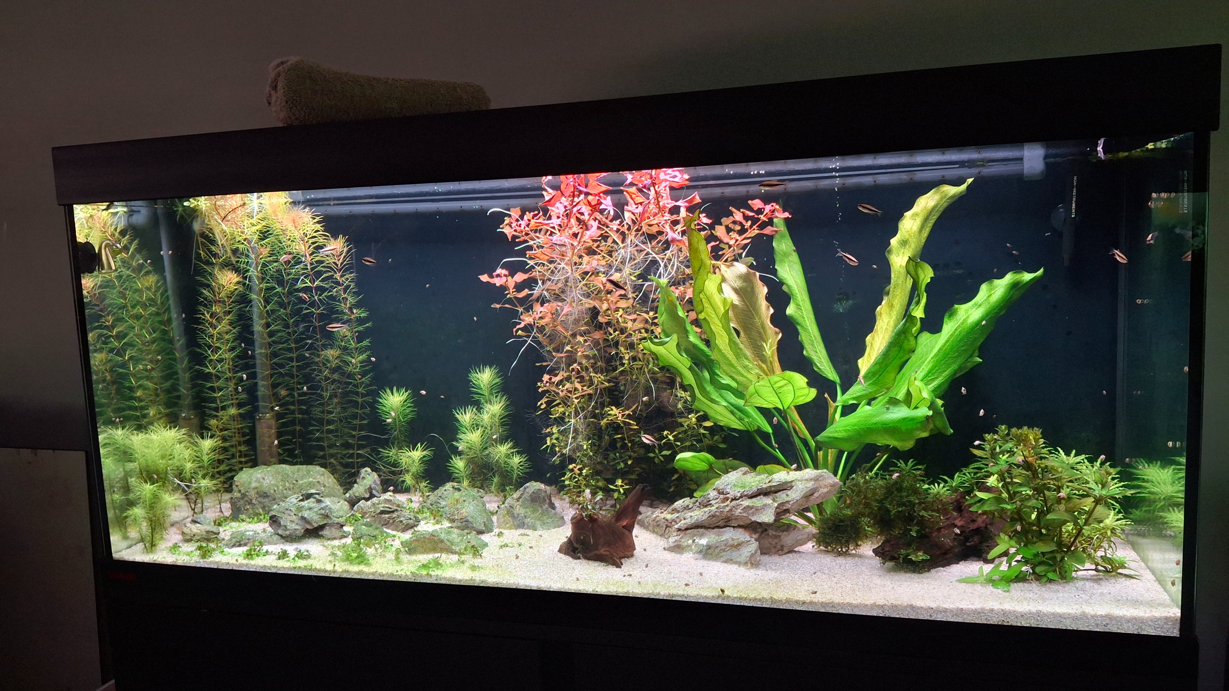 Dit weekend de rio vervangen voor een Eheim Vivaline 240 in antraciet icm chihiros universal wrgb 1200.