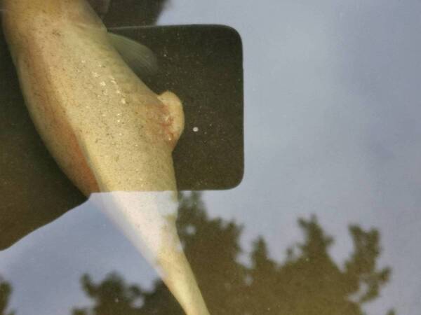 Ik heb echter weer een vis met een probleem. Gisteren viel me een kleine uitstulping op. Vandaag is deze enorm geworden. Kan dit ook van ammoniak zijn?Ik durf er niet meer mee naar de vijver specialist. Weet iemand hoe ik deze vis kan helpen?