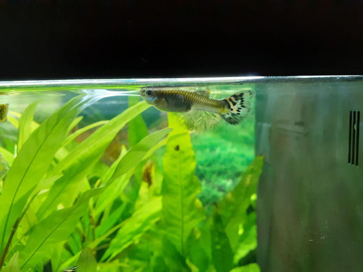 en ik heb geen kleintjes meer gezien sinds september/oktober, ook al waren de vrouwtjes vissen zwanger. Dit visje is precies nog nooit bevallen (of toch in dit aquarium nog niet). Is er iets dat ik kan doen zonder dat het schade aanbrengt? Zou water verversen, ander voer geven of juist hetzelfde, ... wat helpen?