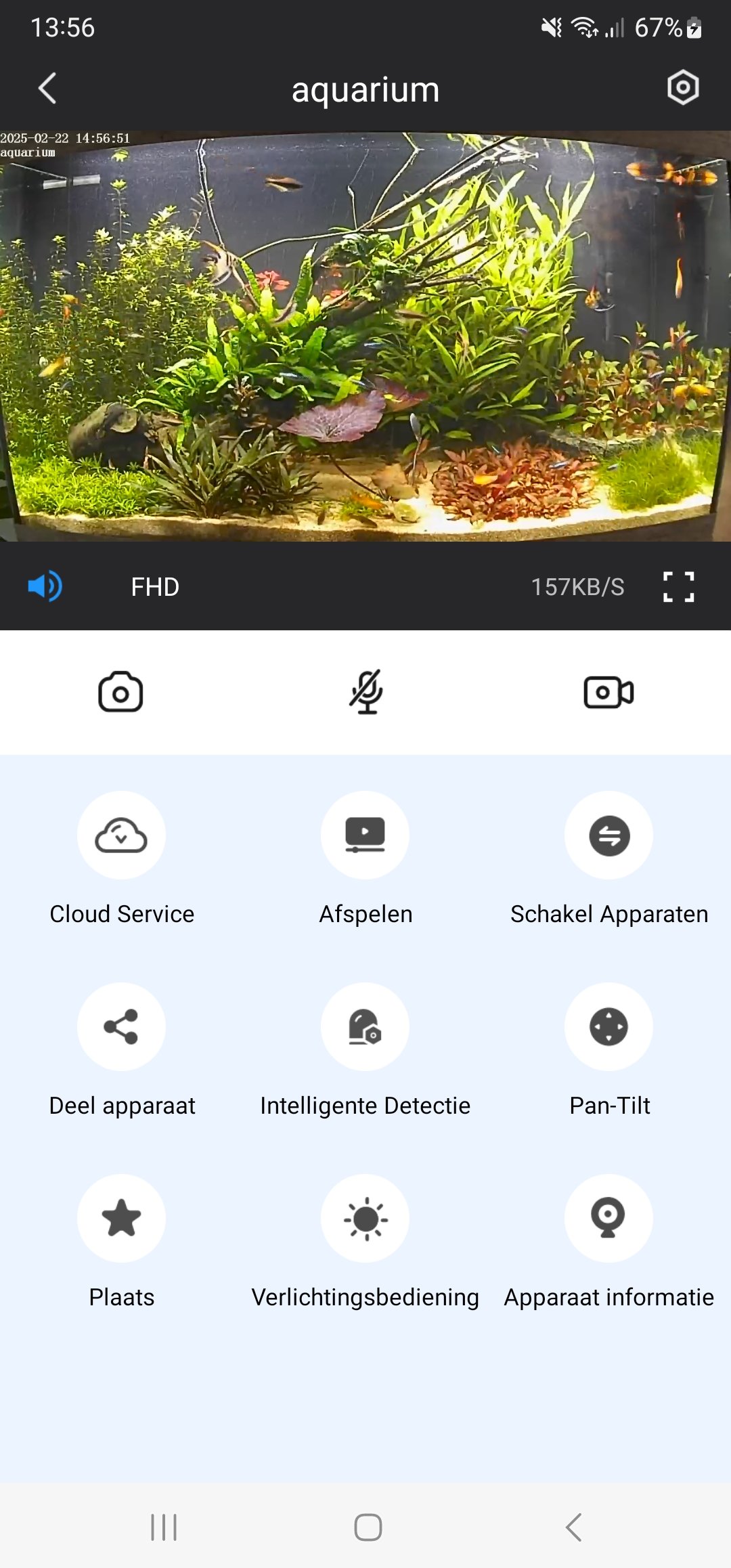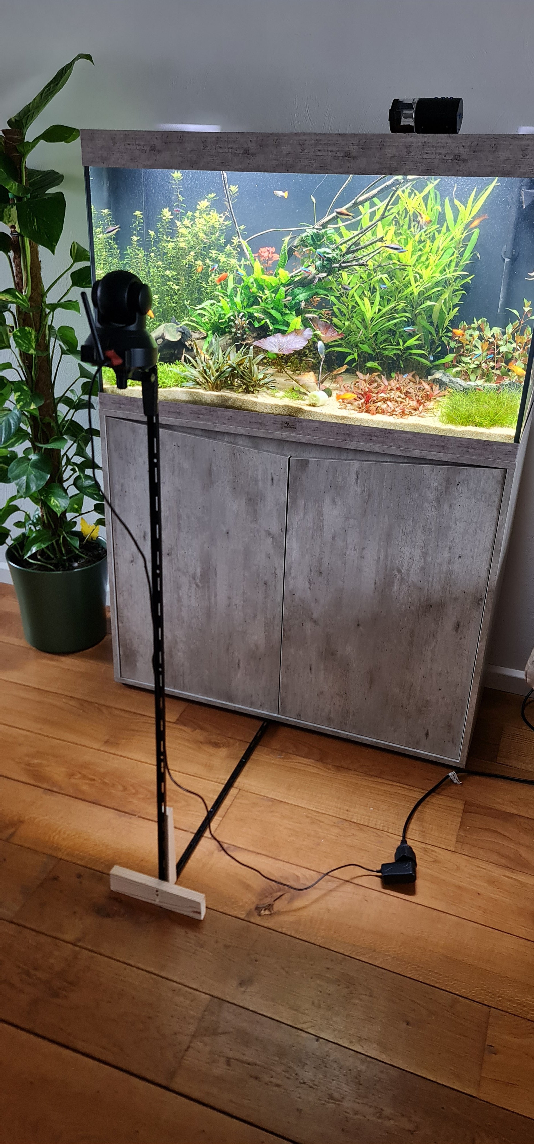 Omdat we volgende week op vakantie gaan heb ik als experiment een ip camera die ik nog had liggen bij het aquarium geplaatst.