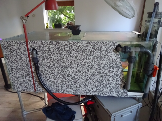 Beginnetje is gemaakt met de achterwand. Bij mij de lastigste zijde. De 4cm dikke PS schuim is hotwire, gatenzaag, bovenfrees en stanley breekmes geknutseld . De pvc buizen zijn ca 2cm vanaf de ruit dus er zijn een redelijk aantal kamers redelijk precies handmatig er in gefreesd.