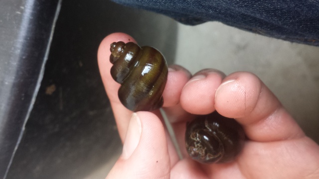 Verder zag ik nog moerasslakken, het leek me leuk om deze in de speciekuip te doen samen met de guppen.