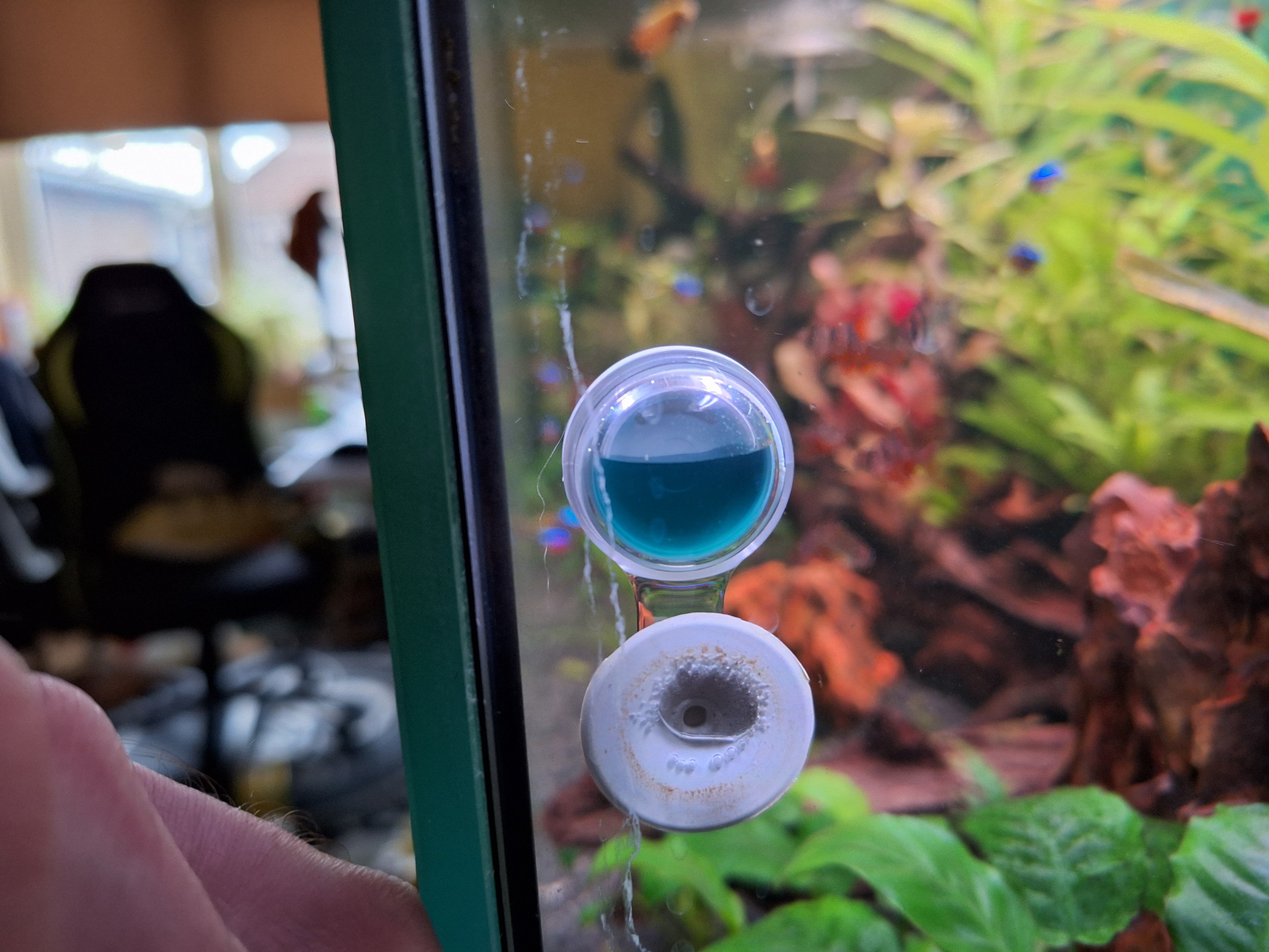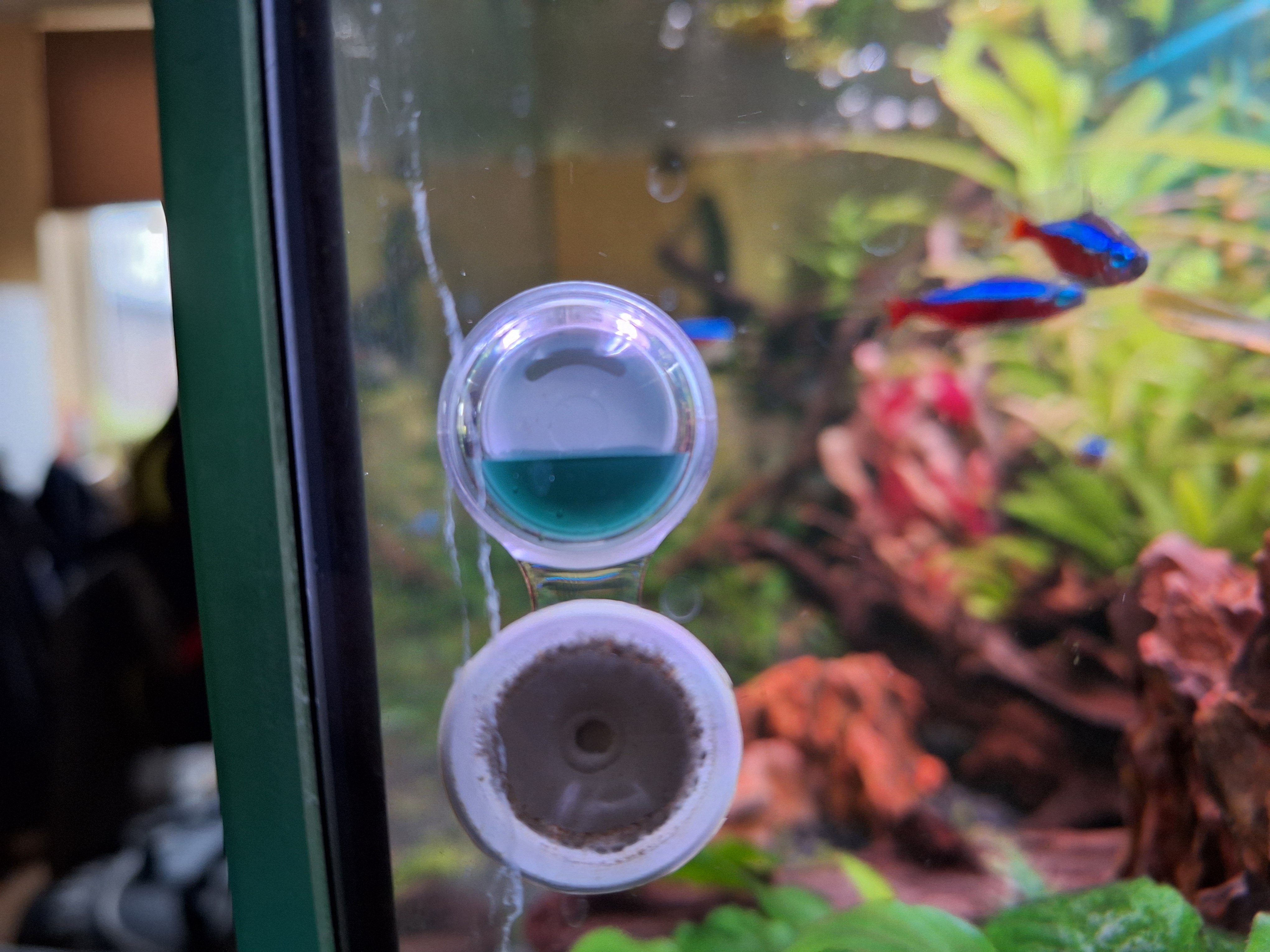 Dat staat toch in relatie met het oppervlak van het bakje? Als je bakje niet te groot is dan kun je dacht ik niet teveel co2 krijgen.hier moet ik oppassen op mijn 600l aquarium dat ik via omgekeerd bakje geen knal gele dropshecker krijg