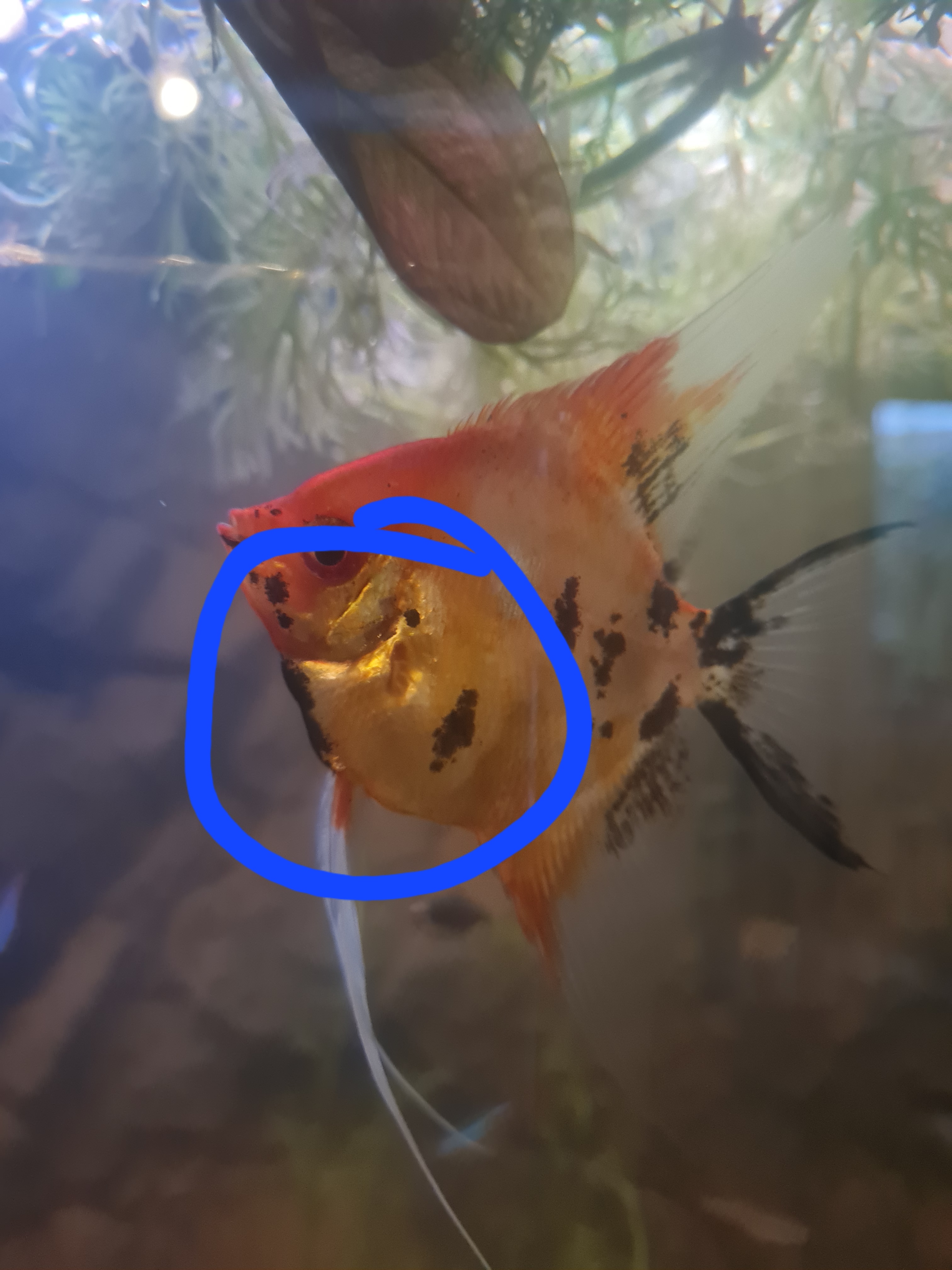 Het viel mij net ineens op dat alle 5 mn maantjes in meer of mindere mate een opgezwollen buik hebben alsof ze een grote steen hebben ingeslikt. Heeft iemand enig idee wat dit kan zijn ? Buikwaterzucht ? Stress? Er is veel onrust in de bak en net schoot een van de discussen door de bak heen. Daarom ging ik kijken.