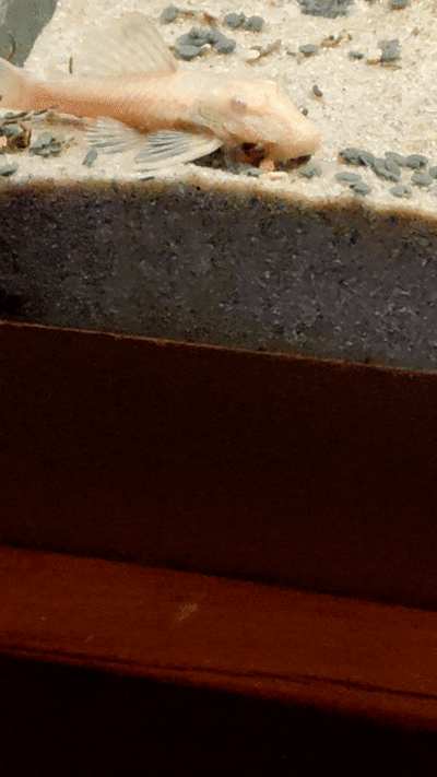 Je ziet de vissen kauwen op de korreltjes.