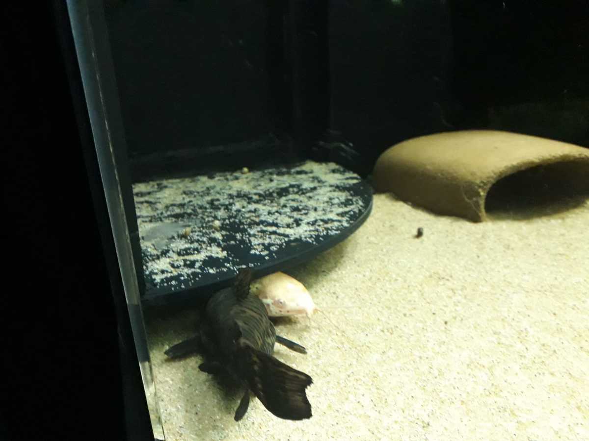 Eigen mening over de vis in zijn totaliteit: deze hoplo’s zijn misschien wel mijn favoriete vissen op dit moment. Lekker lomp in hun gedrag, afwisselend relaxt op de bodem zitten en dan opeens omhoogschieten voor een hap lucht of om hyper rond te zwemmen. Als volwassen dieren niet per se de meest kleurrijke vissoort maar daar geef ik niet om. Ik zie dat ze best verschillende karakters/leefwijzes kunnen hebben: de bruine die ik heb is overdag aardig actief, alert, en komt --als daar iets drijft-- ook aan de oppervlakte eten; de albino eet enkel van de bodem, is overdag meer teruggetrokken en veelal in haar grot te vinden, en zij komt pas goed tot leven als de lichten doven.